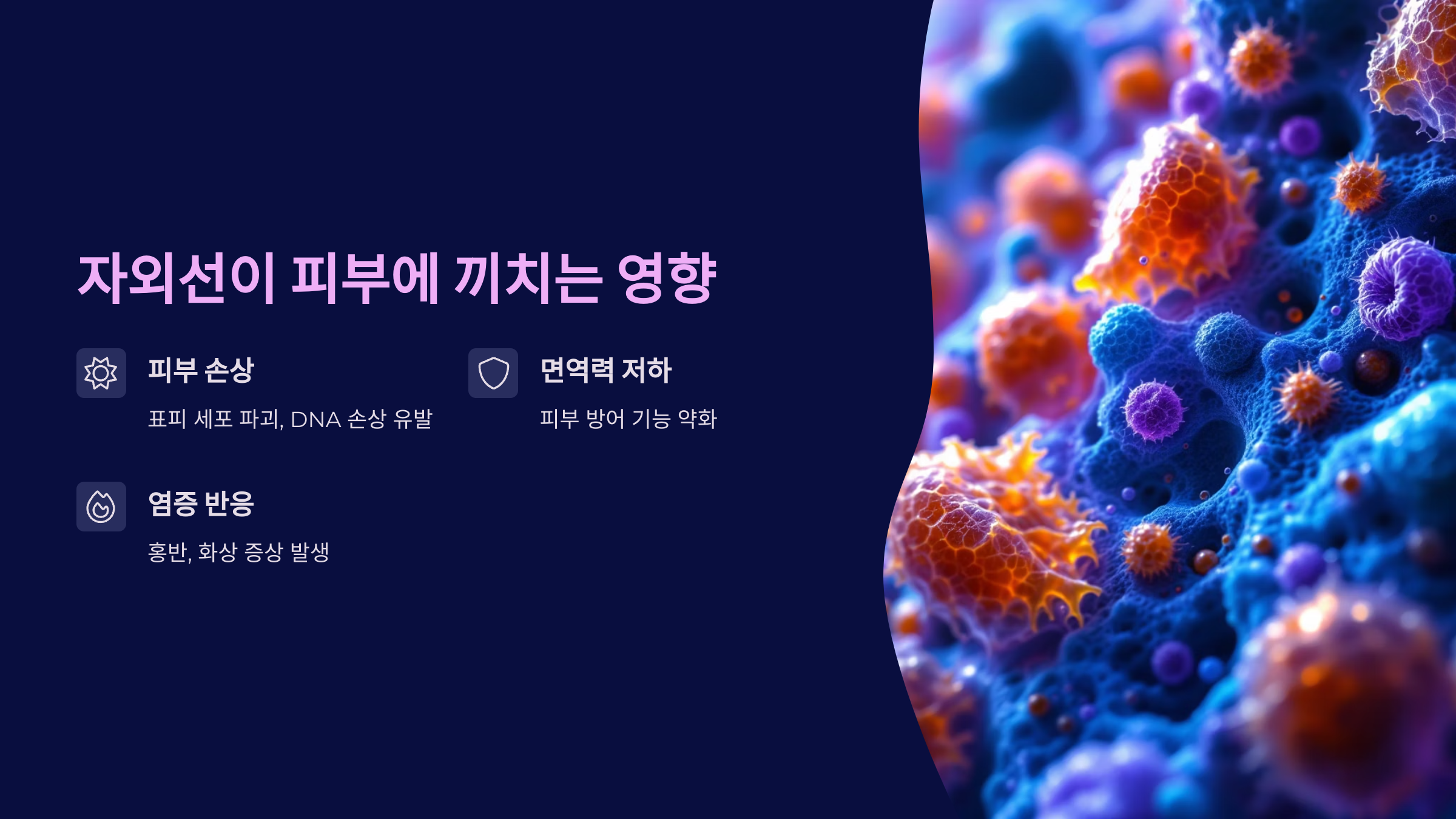 자외선은 피부 깊숙이 침투해 멜라닌 색소 생성을 자극하고, 피부 세포의 DNA까지 손상시킬 수 있어요. 특히 자외선 A(UVA)는 피부 진피층까지 도달해 탄력을 떨어뜨리고 주름을 만들어요. 반면 자외선 B(UVB)는 피부 표피층에 영향을 줘서 선번, 즉 햇볕에 탄 피부처럼 붉어지게 만들죠.