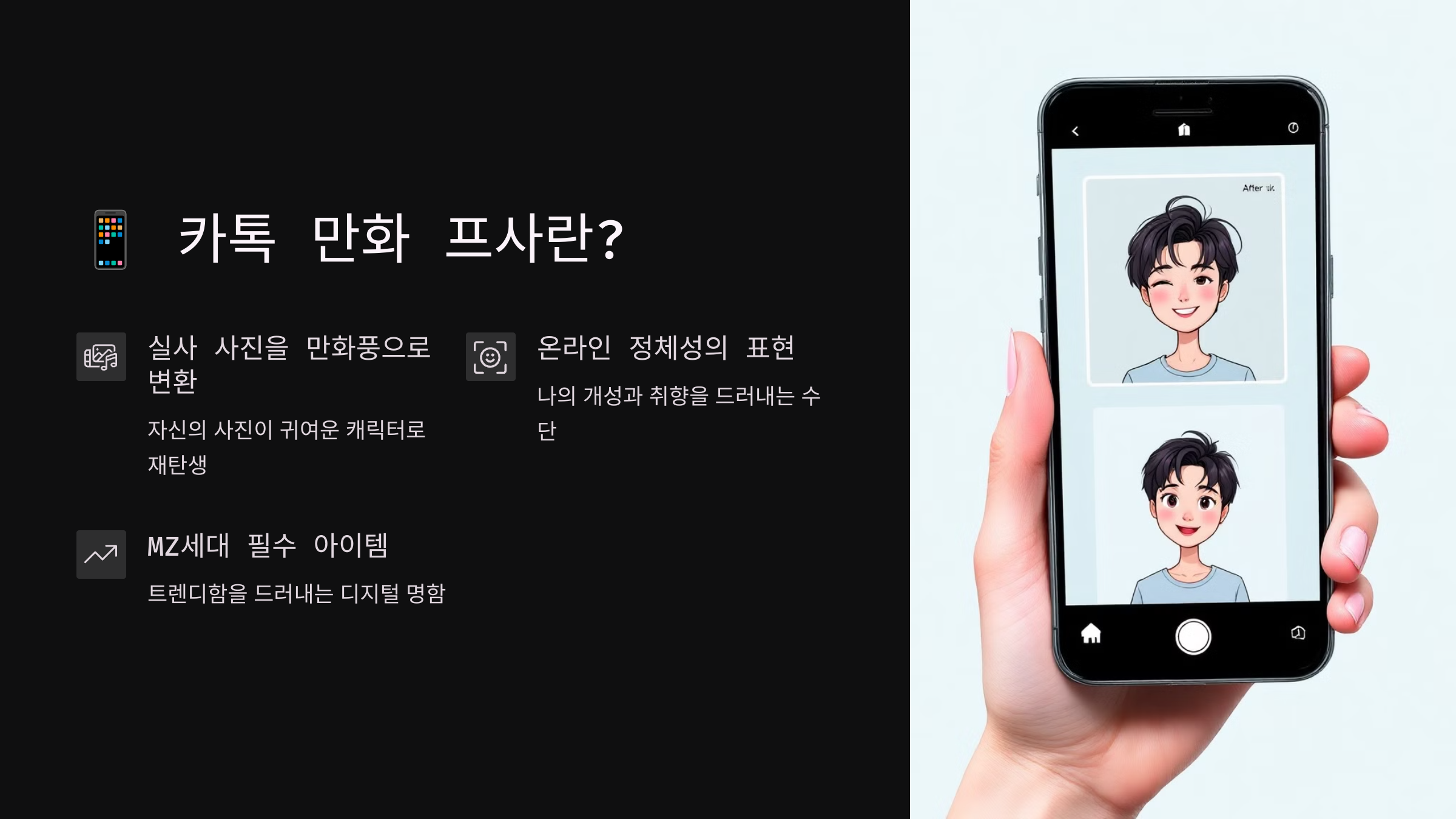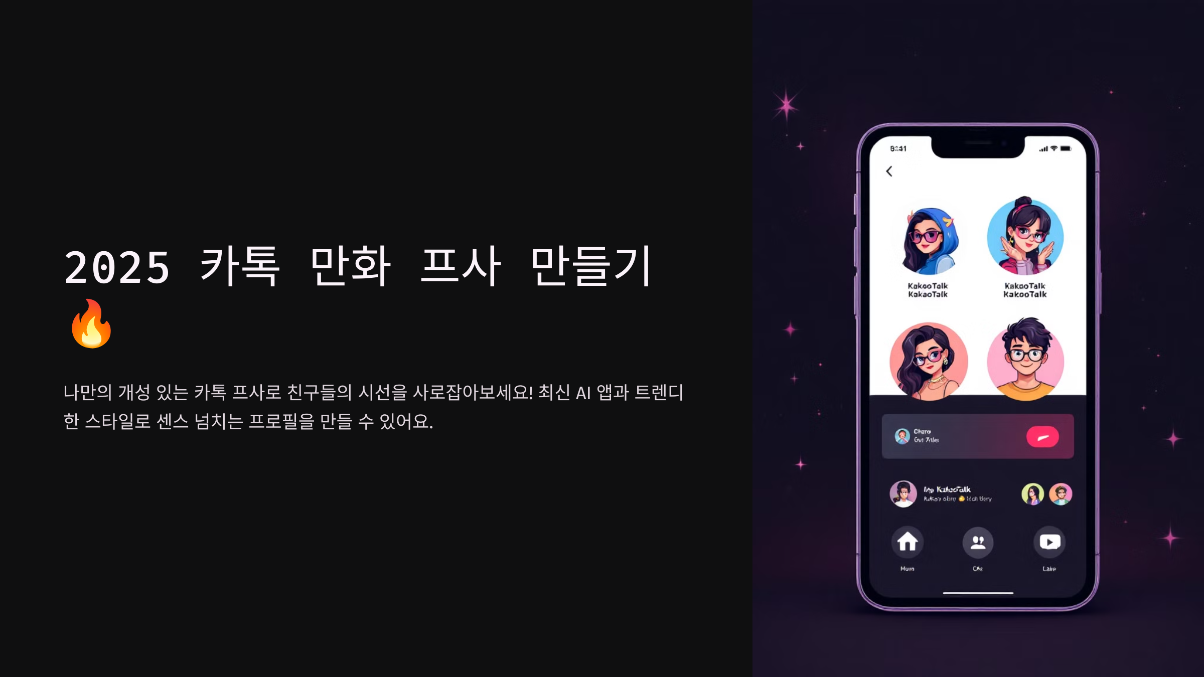 프사 하나만 바꿔도 톡방 분위기가 달라지고, 주변에서 "어디서 했어?"라는 질문이 쏟아지기도 해요. 그래서 많은 분들이 AI 앱, 캐릭터 스타일 앱을 이용해 나만의 프사를 만들고 있답니다.