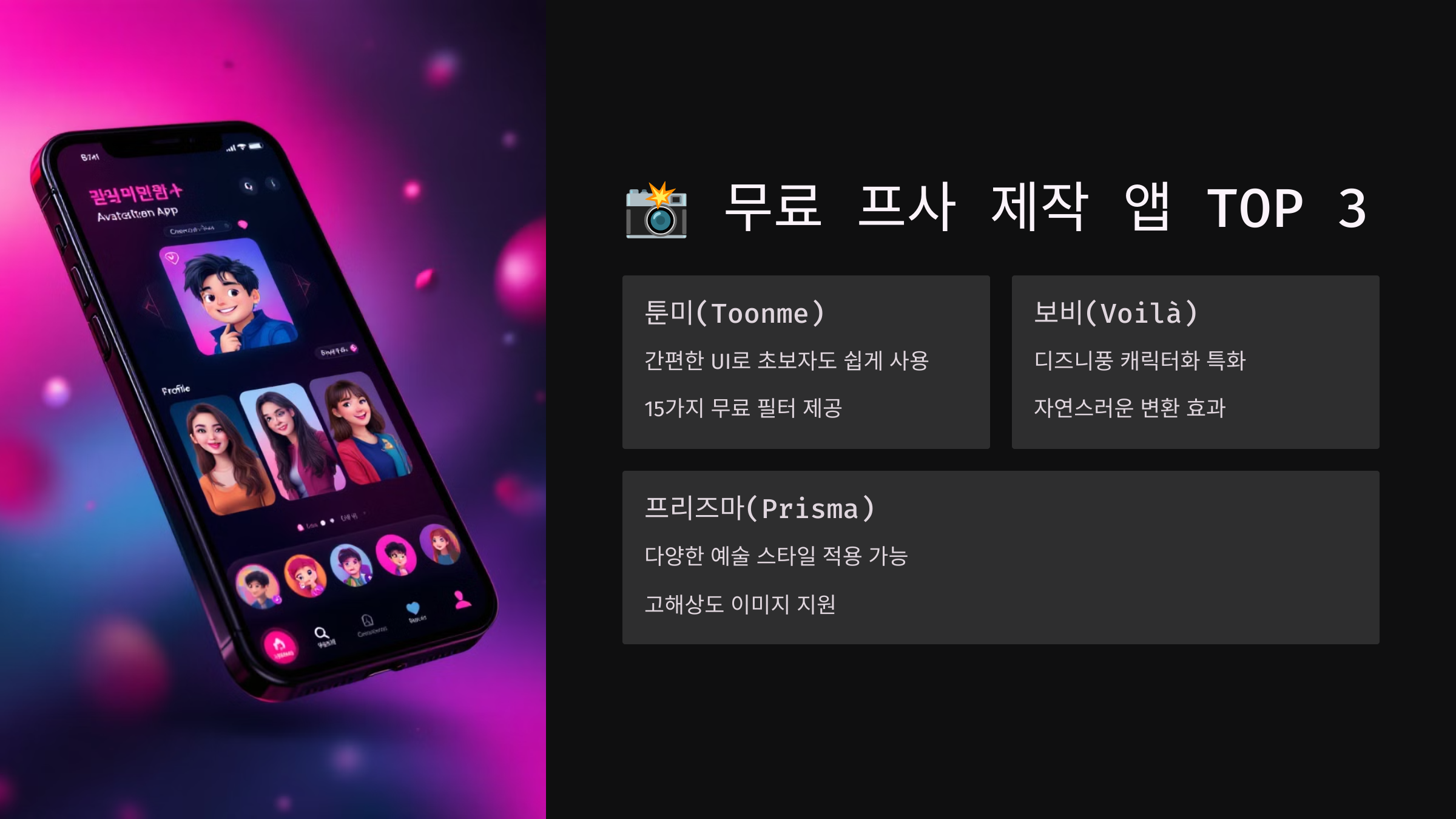 지금 바로 사용할 수 있는 무료 프사 제작 앱 TOP 3를 소개할게요. 🏆