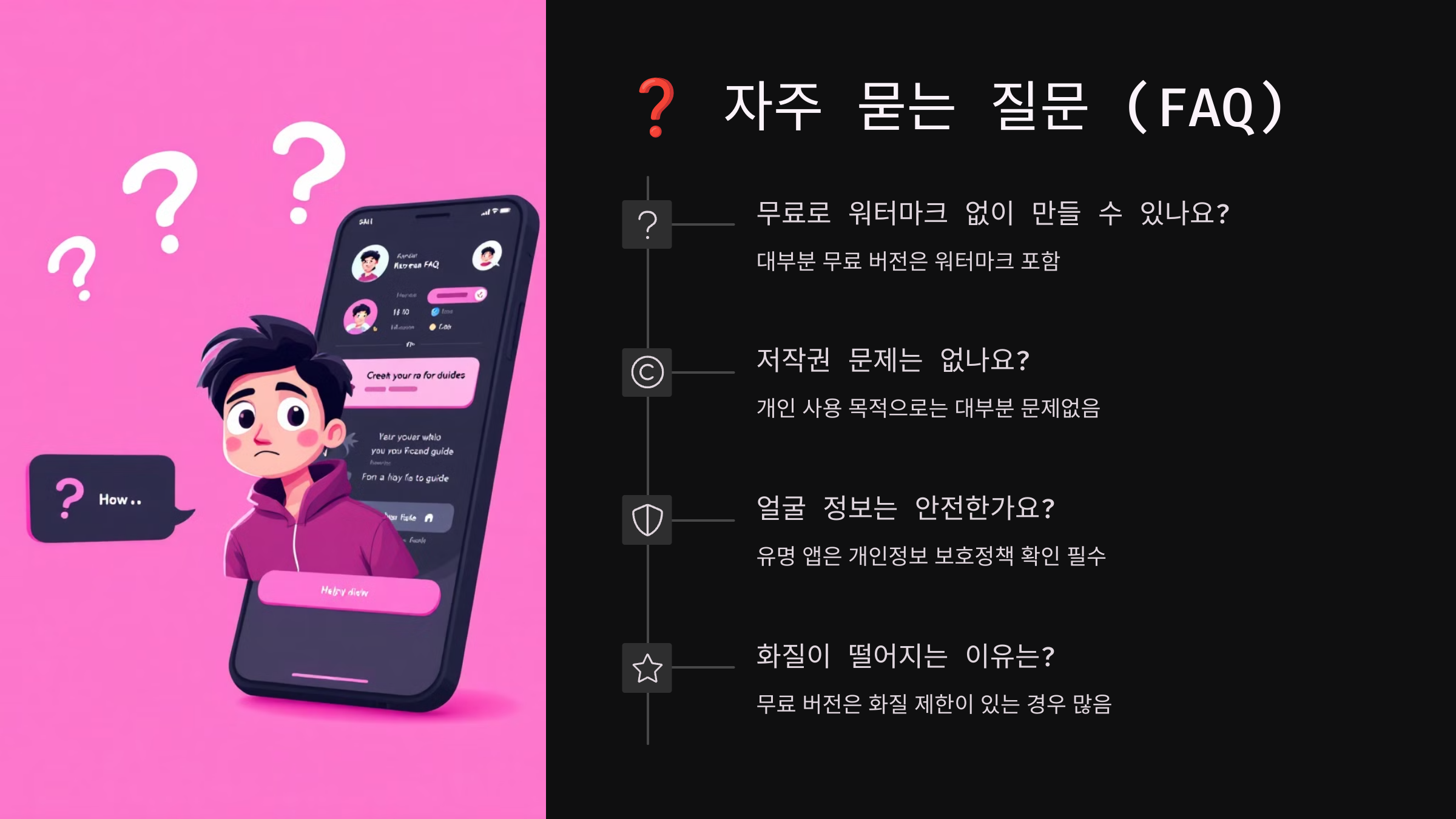 A4. 네. 무료 앱도 충분히 퀄리티 있는 결과물을 만들어줘요. 다만, 워터마크와 해상도 제한은 감안하셔야 해요.
