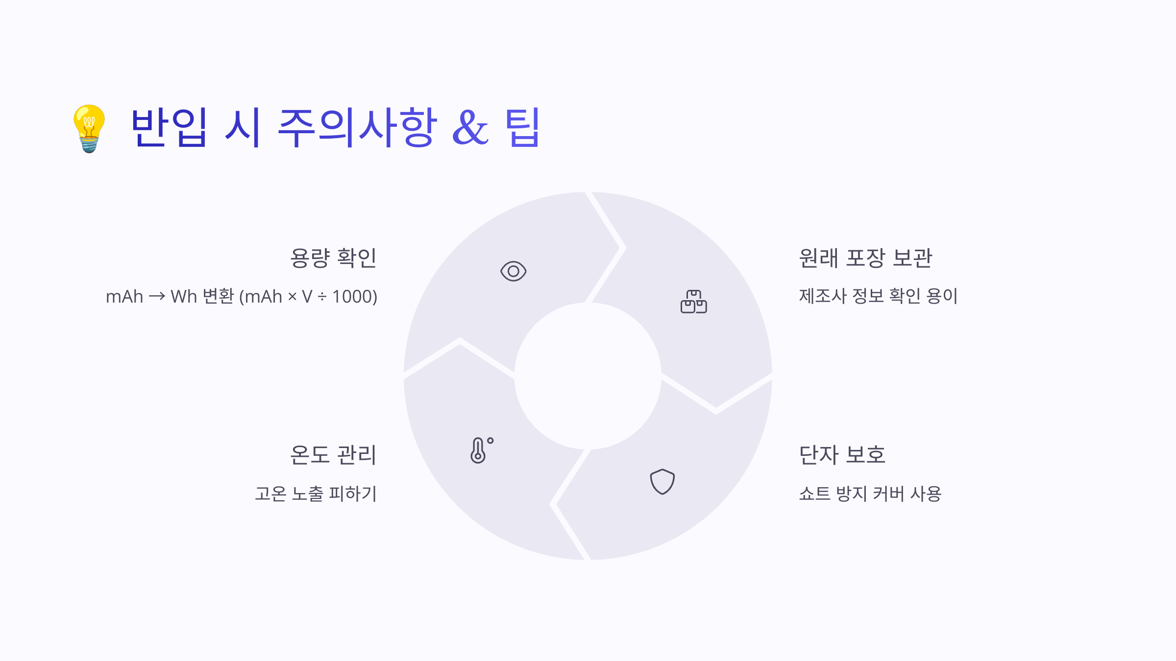 - ✅ 외부에 용량 표기 확인 (mAh or Wh)