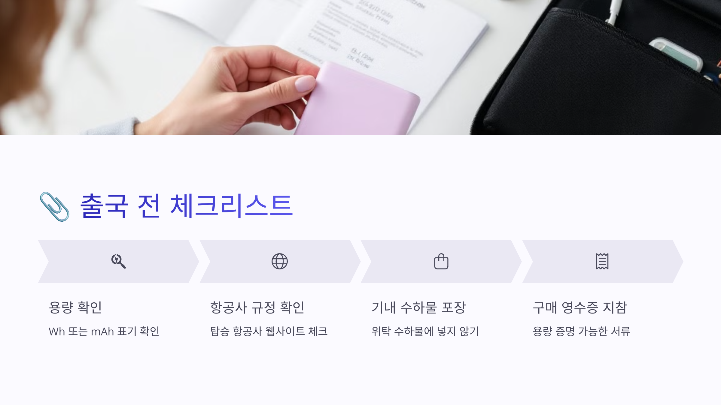 보조배터리로 불편함 없이 여행하려면, 이 체크리스트만 기억하세요 🔍