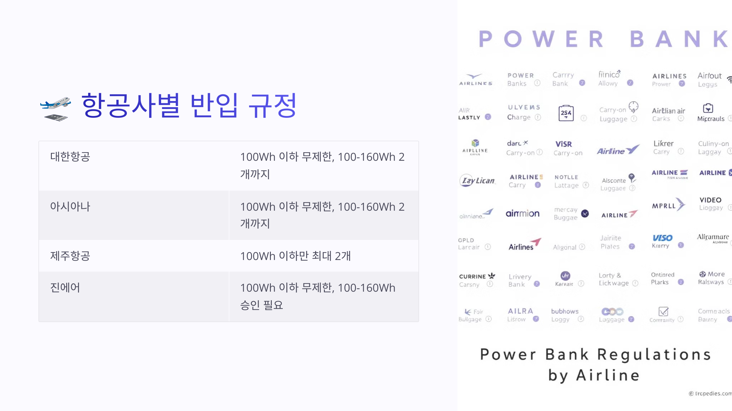 🗂 주요 항공사별 보조배터리 반입 규정 비교