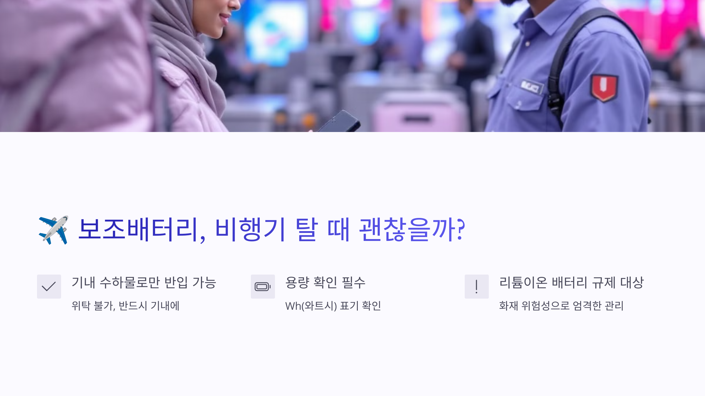 - ✅ 보조배터리는 반드시 기내에 들고 타기