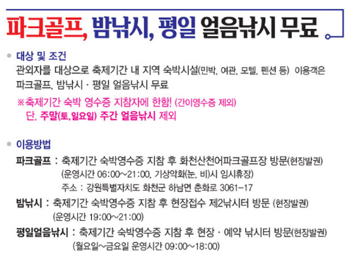 얼음낚시 외에도 눈썰매, 스노우 레프팅, 얼음 미끄럼틀 같은 겨울 액티비티를 추천해요. 가족 단위 방문객이라면 어린이들이 놀기에 좋은 프로그램도 많으니 하루 종일 다양한 체험을 즐길 수 있답니다. 특히, 야간에는 조명으로 꾸며진 얼음 조각 전시를 감상할 수 있어요.