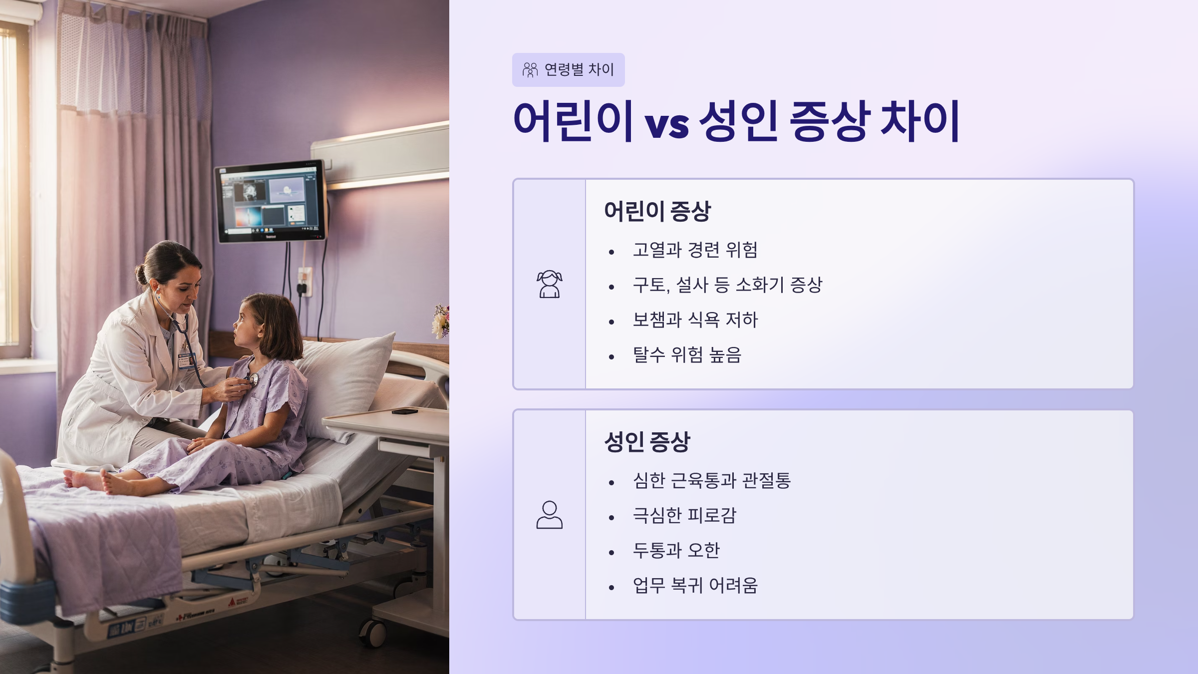 👶 어린이 vs 성인 증상 차이