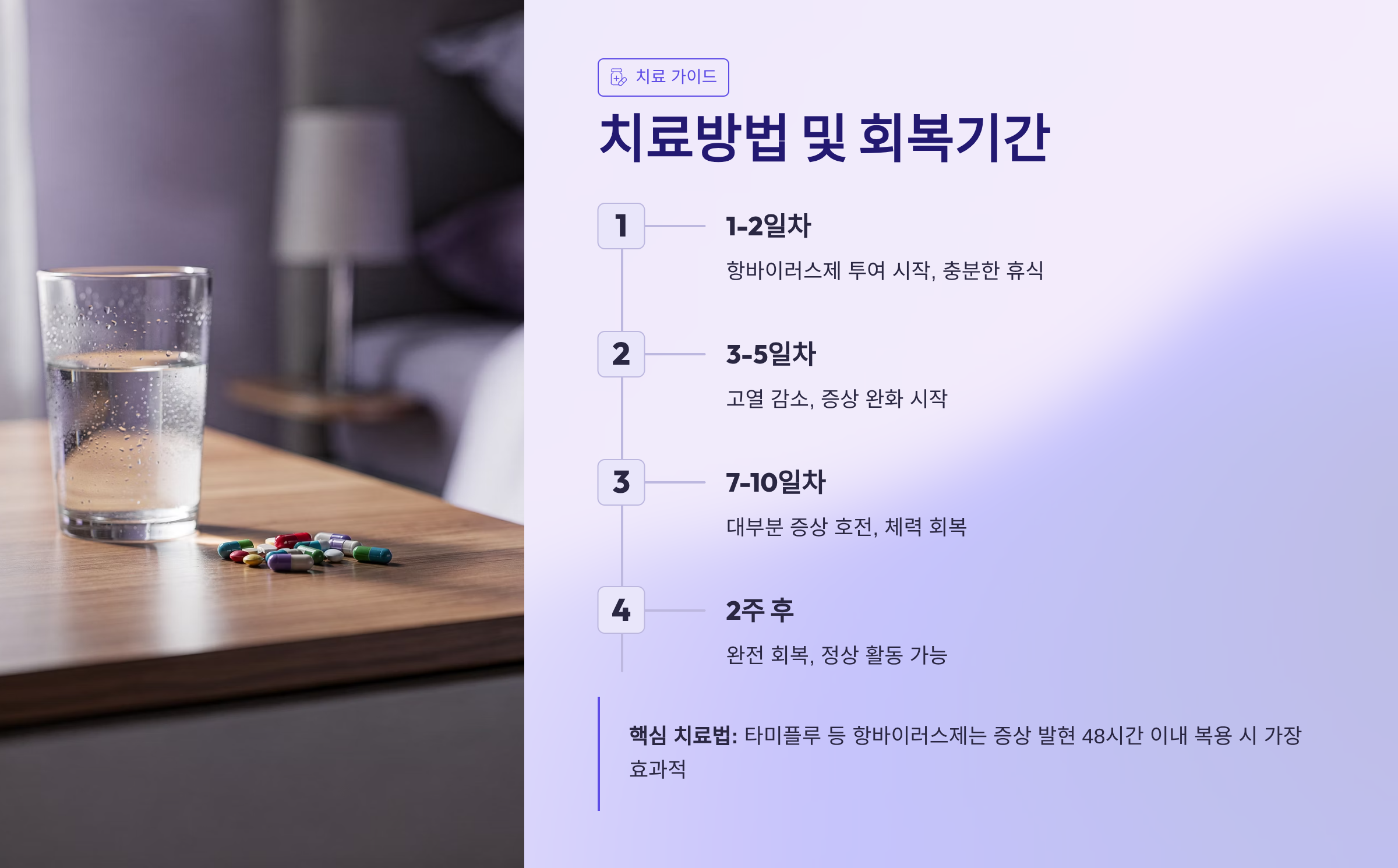 회복기간은 평균적으로 5~7일 정도 걸리며, 면역력 상태나 나이에 따라 더 길어질 수 있어요. 특히 어린이나 고령자는 2주 이상 증상이 지속될 수 있으니, 회복 중 무리하지 않는 것이 중요해요.