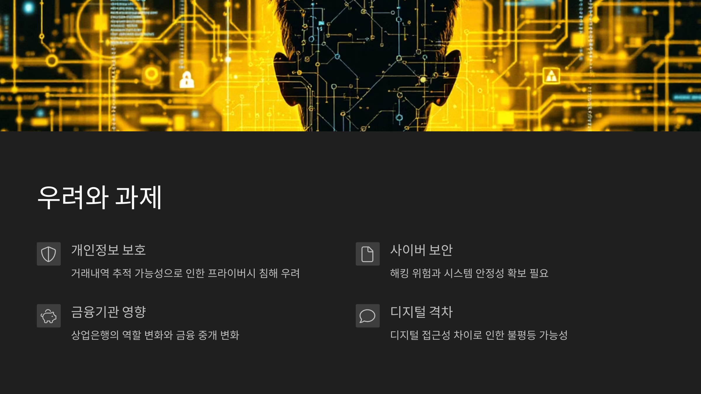 | 은행 위축 | 민간 금융기관 경쟁력 약화 | CBDC-은행 연계 구조 설계 |