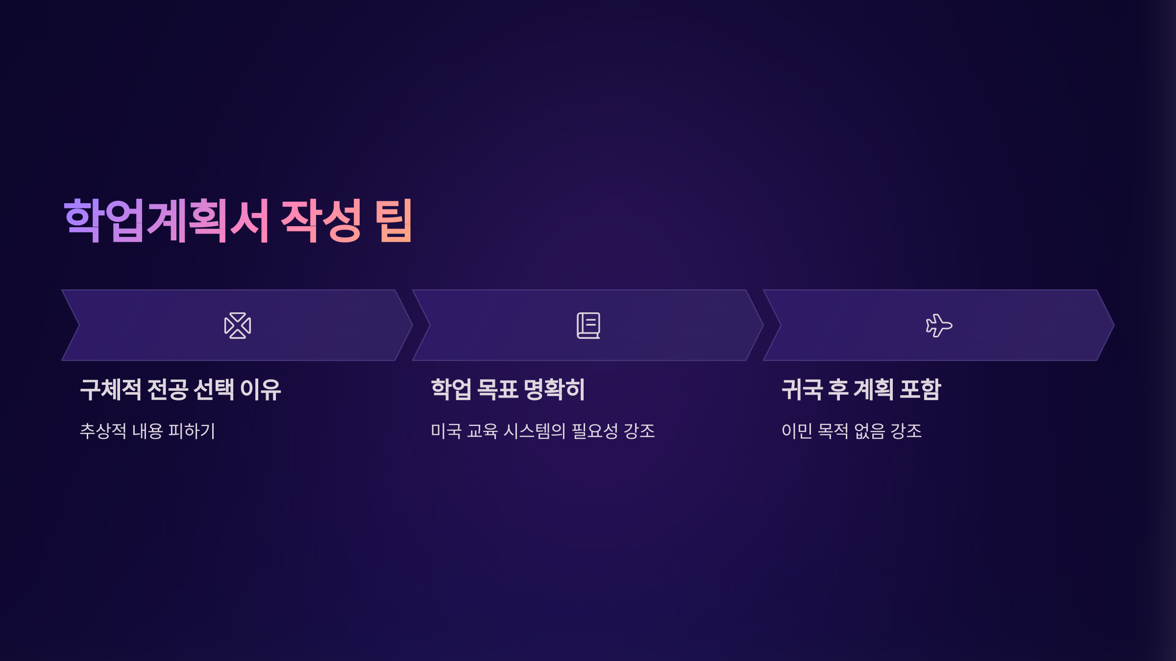 | 학업계획서 | 계획 모호, 이민 암시 | 구체화 + 귀국 계획 강조 |
