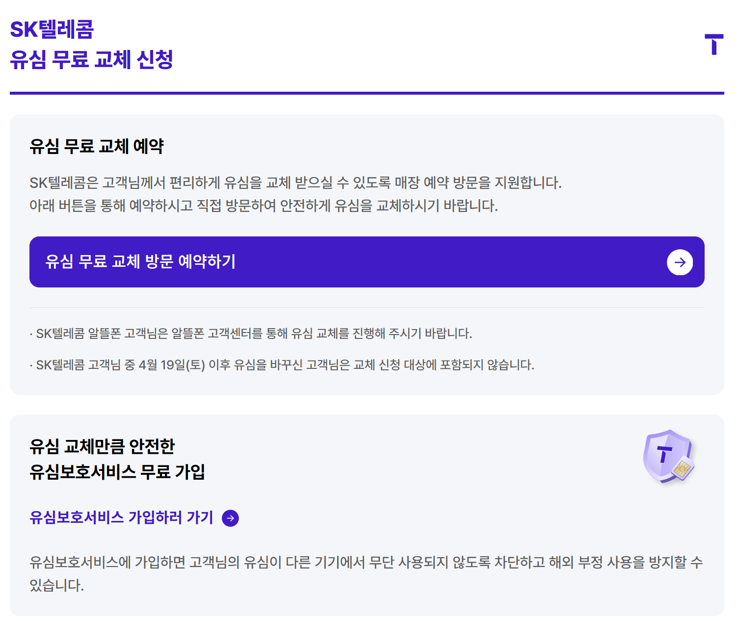 SK 유심보호서비스에 가입하면, 일정 조건을 만족할 경우 유심을 무료로 교체할 수 있어요.